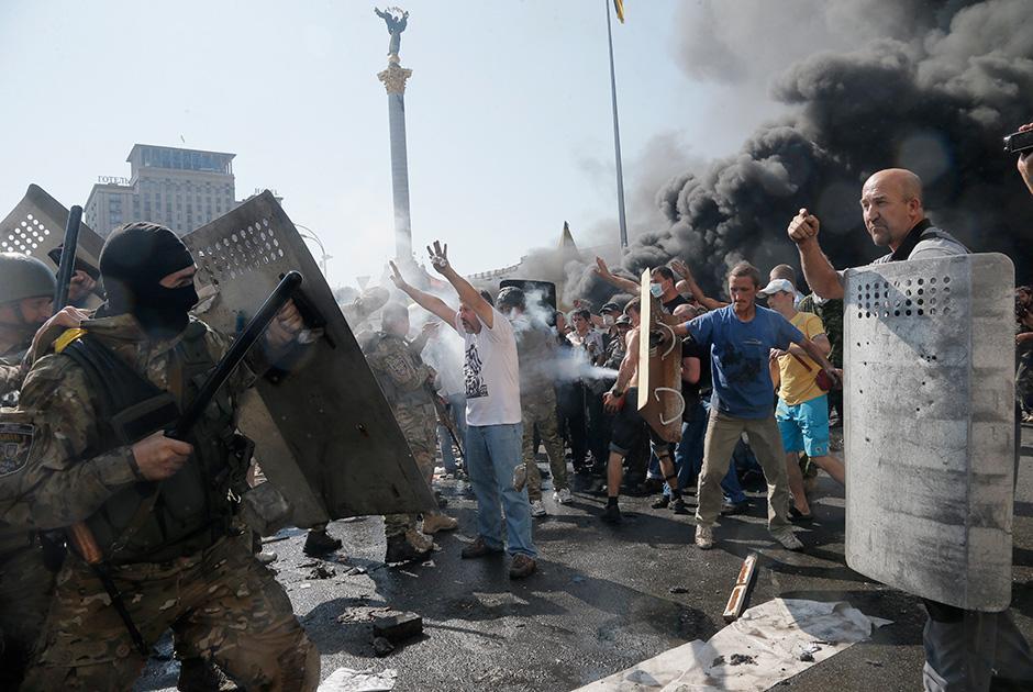 Как сообщалось, в четверг, 7 августа, в Киеве представители власти предприняли попытку разгона Майдана. Коммунальные службы встретили вооруженный отпор представителей палаточного городка. В результате блокирован Майдан Независимости и Крещатик, частично эвакуировано здание киевской мэрии. В нем расположился батальон МВД Украины "Киев-1" и пожарные службы. Вооруженные автоматами Калашникова представители Майдана заняли здание "Главпочтампта". Они соорудили баррикады и готовятся к бою.